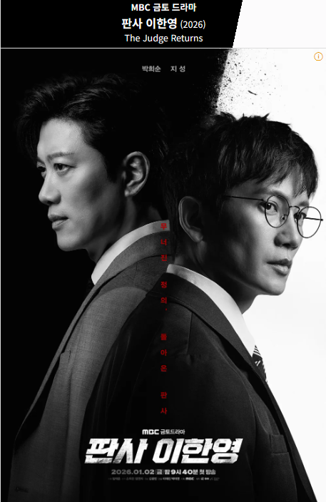 2026년 MBC에서 방영 중인 금토드라마 《판사 이한영》은 잘못된 과거의 판결을 바로잡기 위해 시간 속으로 돌아간 한 판사의 이야기를 다룬 타임슬립 법정 드라마입니다. 소설 원작으로 한 드라마 입니다.